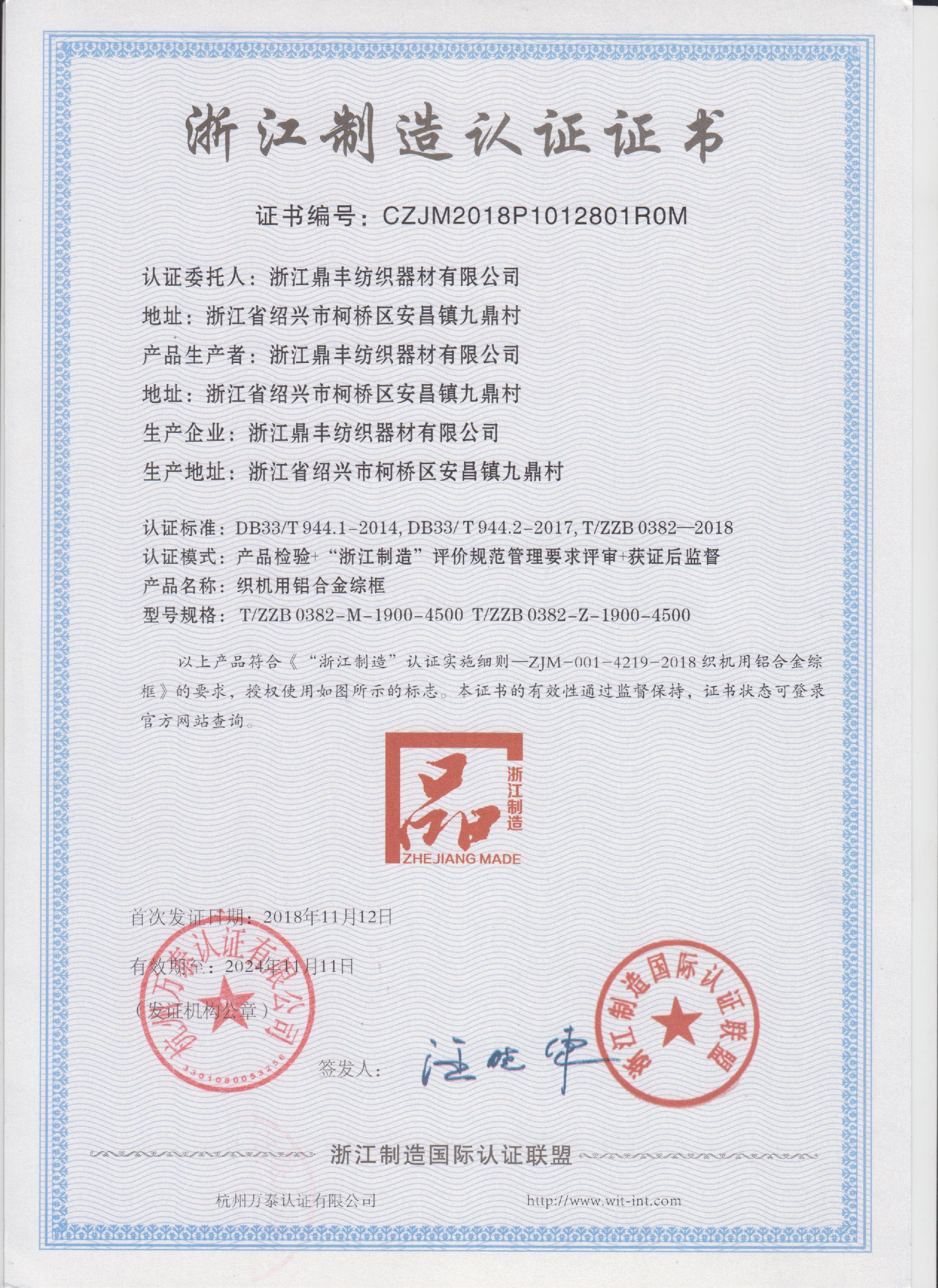 1、貴公司是一家專業(yè)生產各類無梭織機鋁合金鋼筘、綜框、鋼片綜、停經片、經軸、織軸和卷布輥等產品及配件的民營企業(yè)。公司成立30多年迅速發(fā)展、占領市場的秘決是什么?余定雅:是高品質的產品,完善的售后服務和大規(guī)模的生產能力保證了浙江鼎豐紡織器材有限公司的產品銷售量在國內獨占鰲頭。為了與全球市場經濟接軌,鼎豐紡
